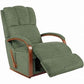 Designed for smaller rooms, the Harbor Town Rocking Recliner gives you the comfort of a recliner with a lighter silhouette and a sleek, stylish frame that's truly transitional. It features a channel-stitched back, a cushioned headrest and decorative bentwood arms topped with pillow-like padding. Simply use the convenient handle on the outside arm to raise the leg rest for reading, relaxing or watching TV. When you’re not reclining, it’s a relaxing rocker with a smooth, graceful motion. Make it yours with your choice of fabrics and other available upgrades.