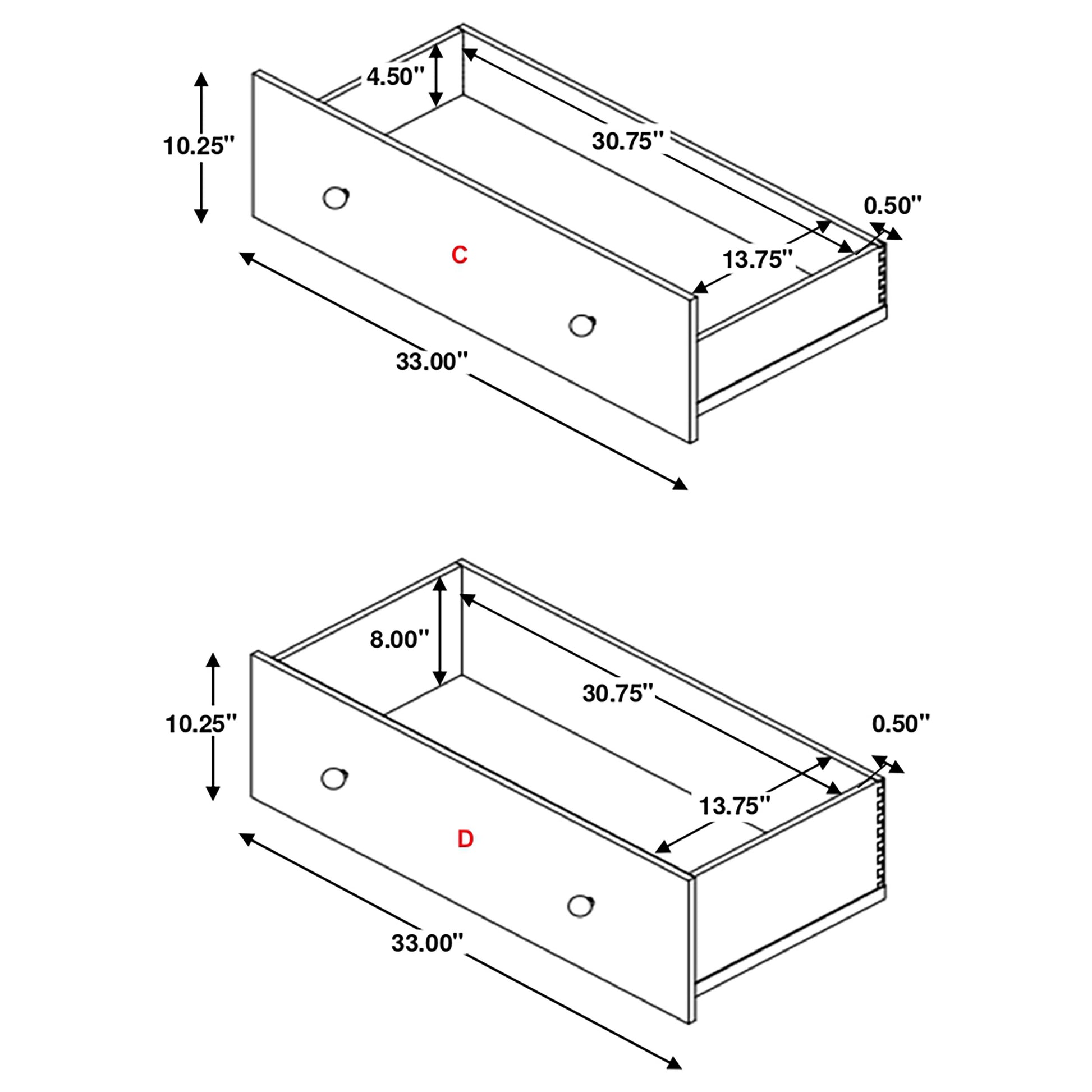 • Drawer Weight Limit: 45 Lbs