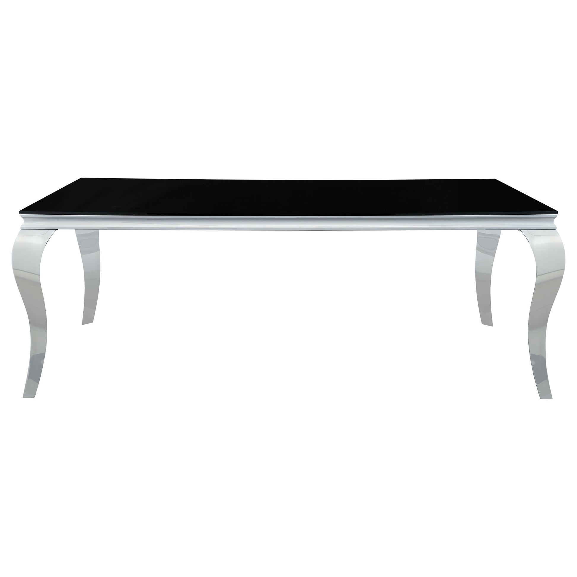 • Immerse in sophistication with the table's stainless steel cabriole legs curving gracefully beneath the 12mm tempered glass top, enhanced by beveled edges
