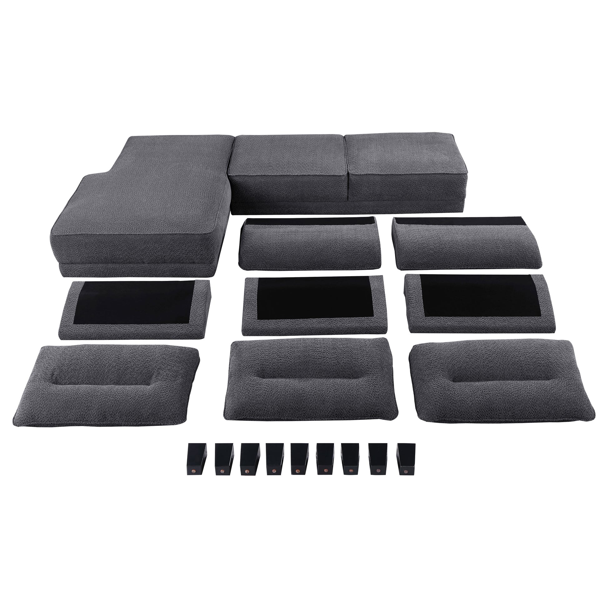 Experience ultimate comfort with this modern two-piece sofa chaise, available in grey or white. The fuzzy teddy bear-like textured fabric upholstery creates a cozy atmosphere. The softly rounded arms and welt framed reversible back cushions add a touch of sophistication. With attached welt-accented boxed seats and solid wood tapered legs, this sectional ensures a well-kept appearance and sturdy foundation.