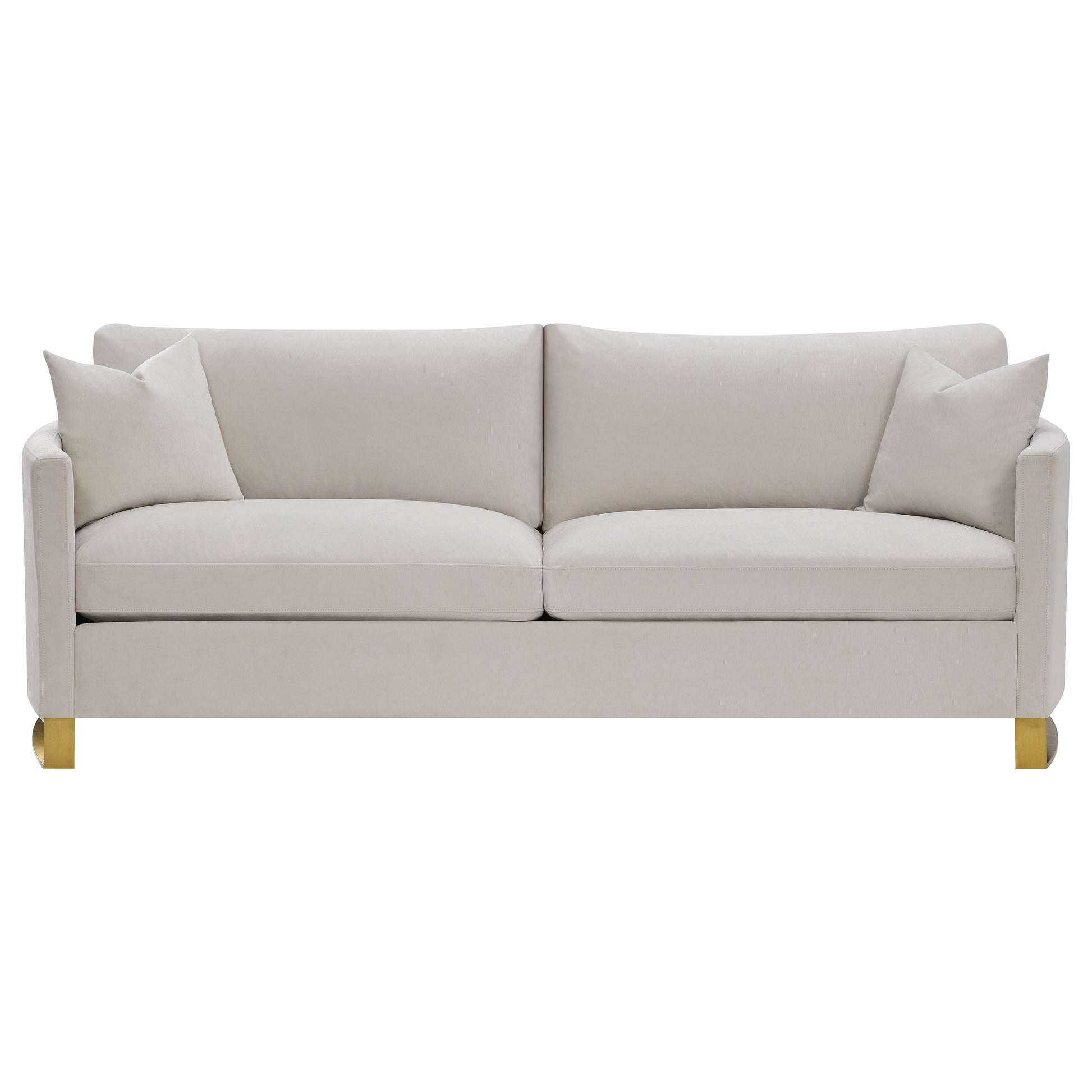 • Arched arms, lustrous accents, and elegant tones give this sofa a combination of simplicity and splendor