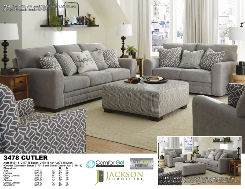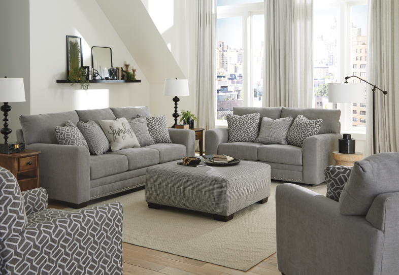 Comfort and classy! Sophisticated lines and classy nail head trim make this set spruce up any room. The loveseat has a stationary option or a gliding option for added relaxation. 2 different ottoman sizes to give your space the look perfect for you!