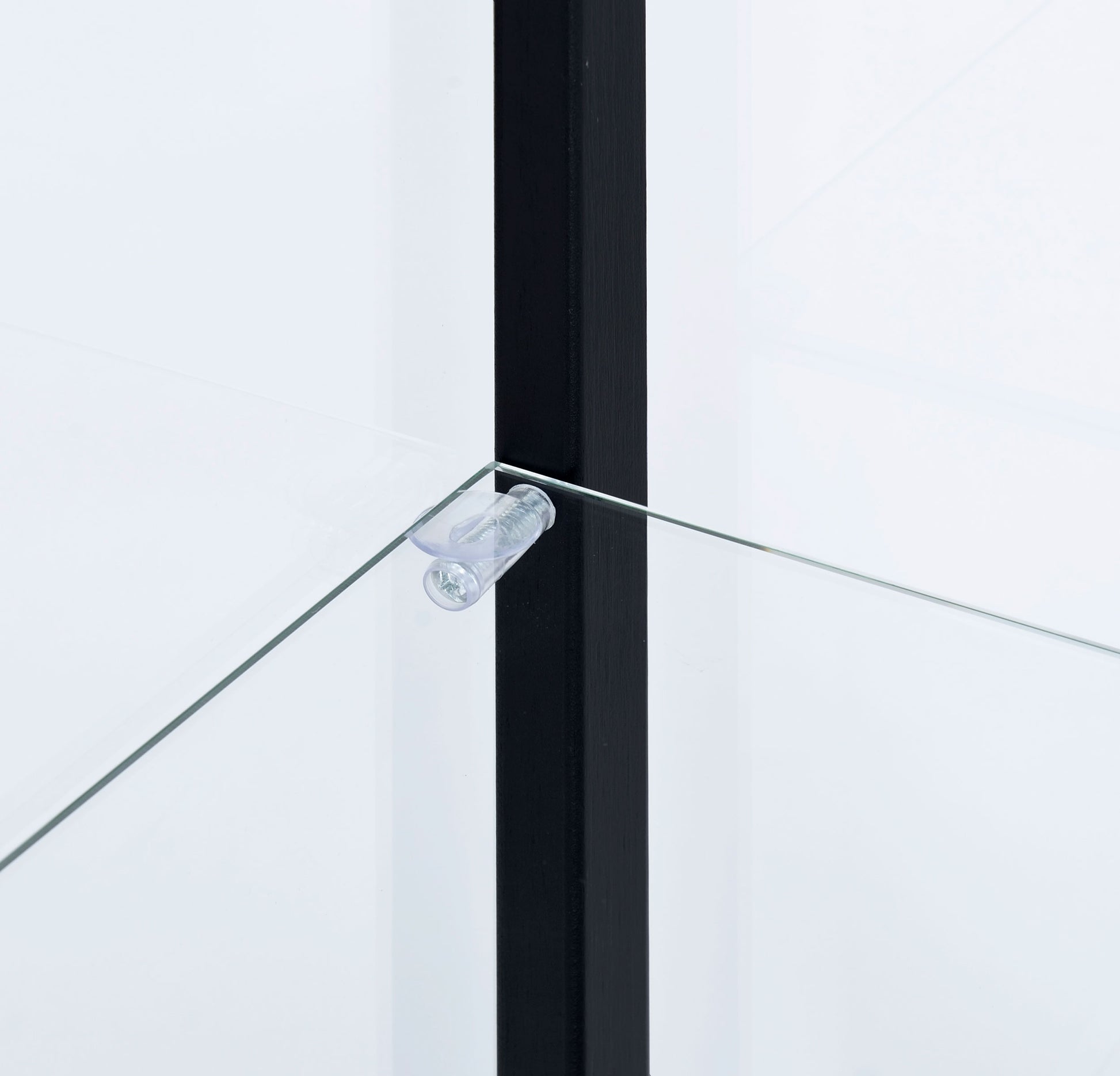 • Five tiers of open glass shelving for collectible or décor display