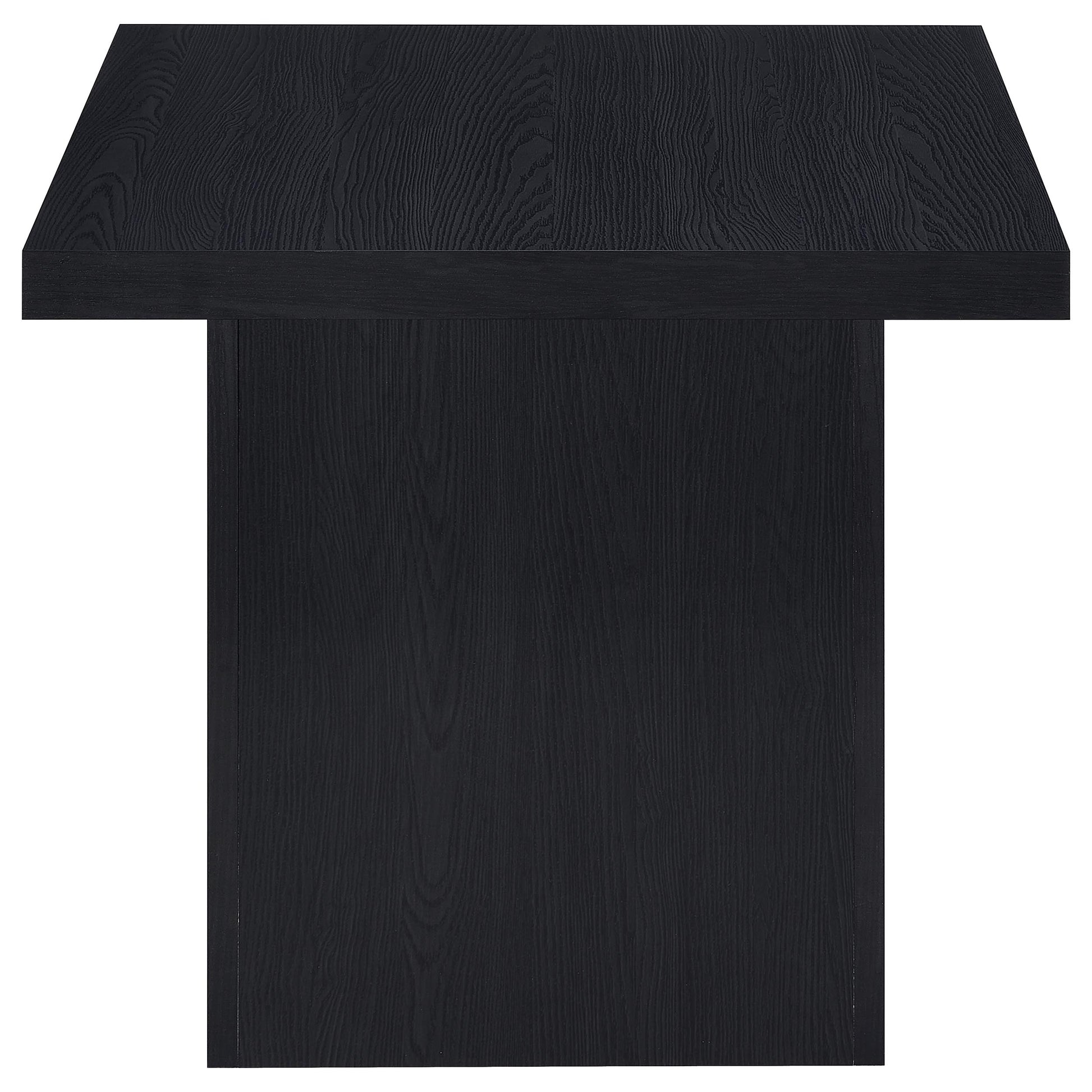 Architectural design meets functional artistry in this occasional table set. With clean geometry and rich black finish, each piece embodies structured modernism. The engineered wood construction is topped with a realistic laminate veneer that captures the look of natural grain. From cocktail table to accent table, the sculpted silhouettes offer grounded beauty and balanced proportion for any contemporary living room.