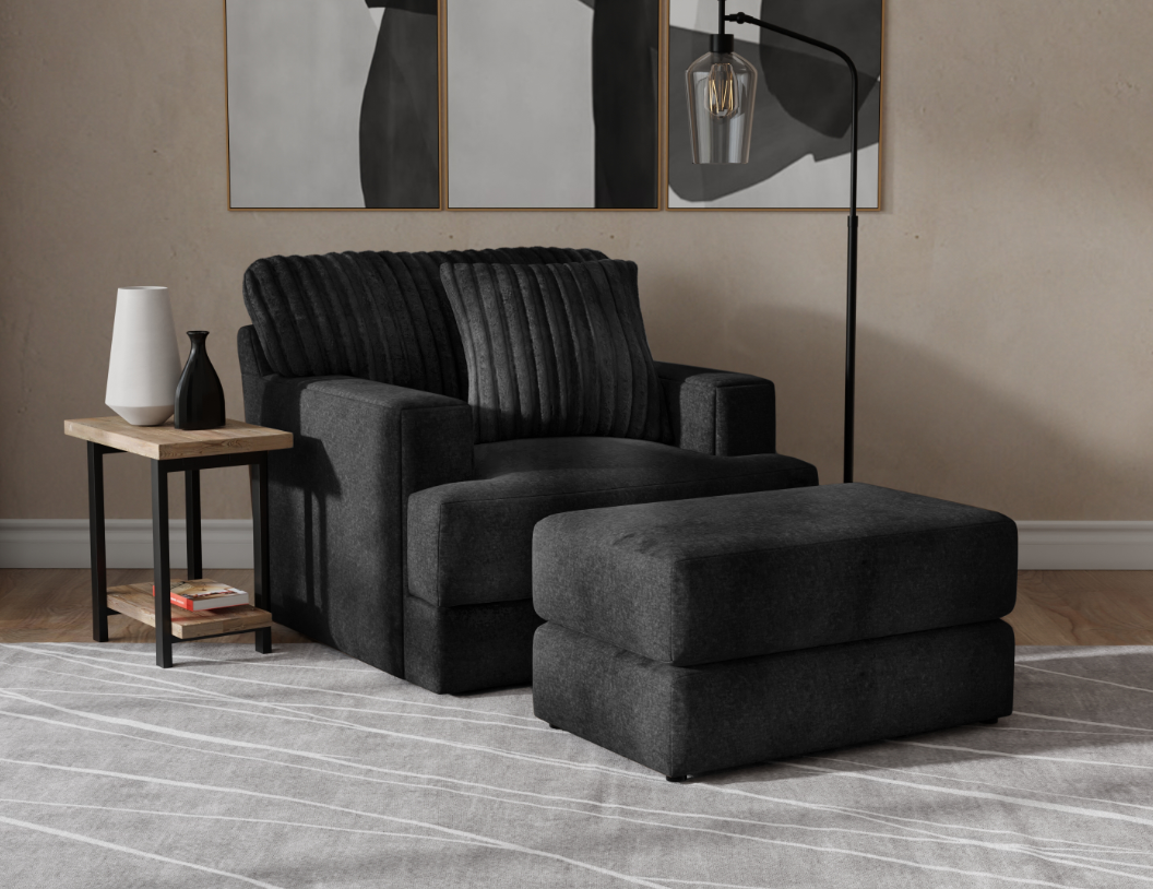 - Soft Durable Fabric Combination featuring Fur Stripe & Correlating Plush Pillows