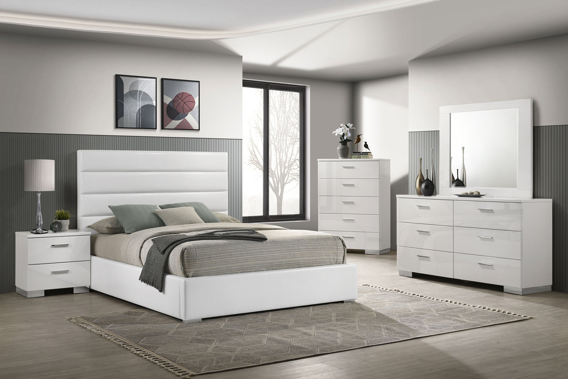 Felicity 5-piece Full Bedroom Set White High Gloss