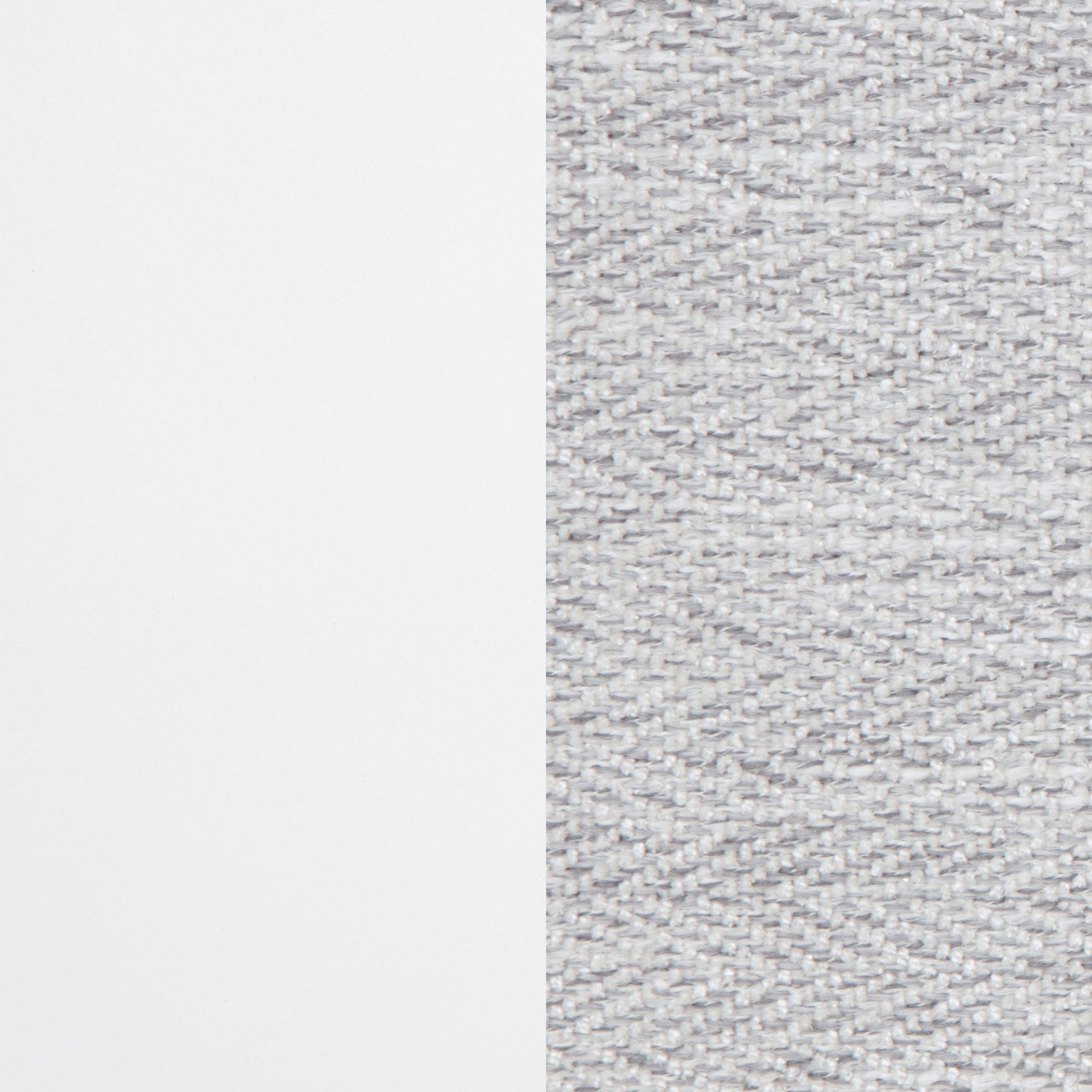 • White finish outlines light grey fabric headboard and footboard for clean structure