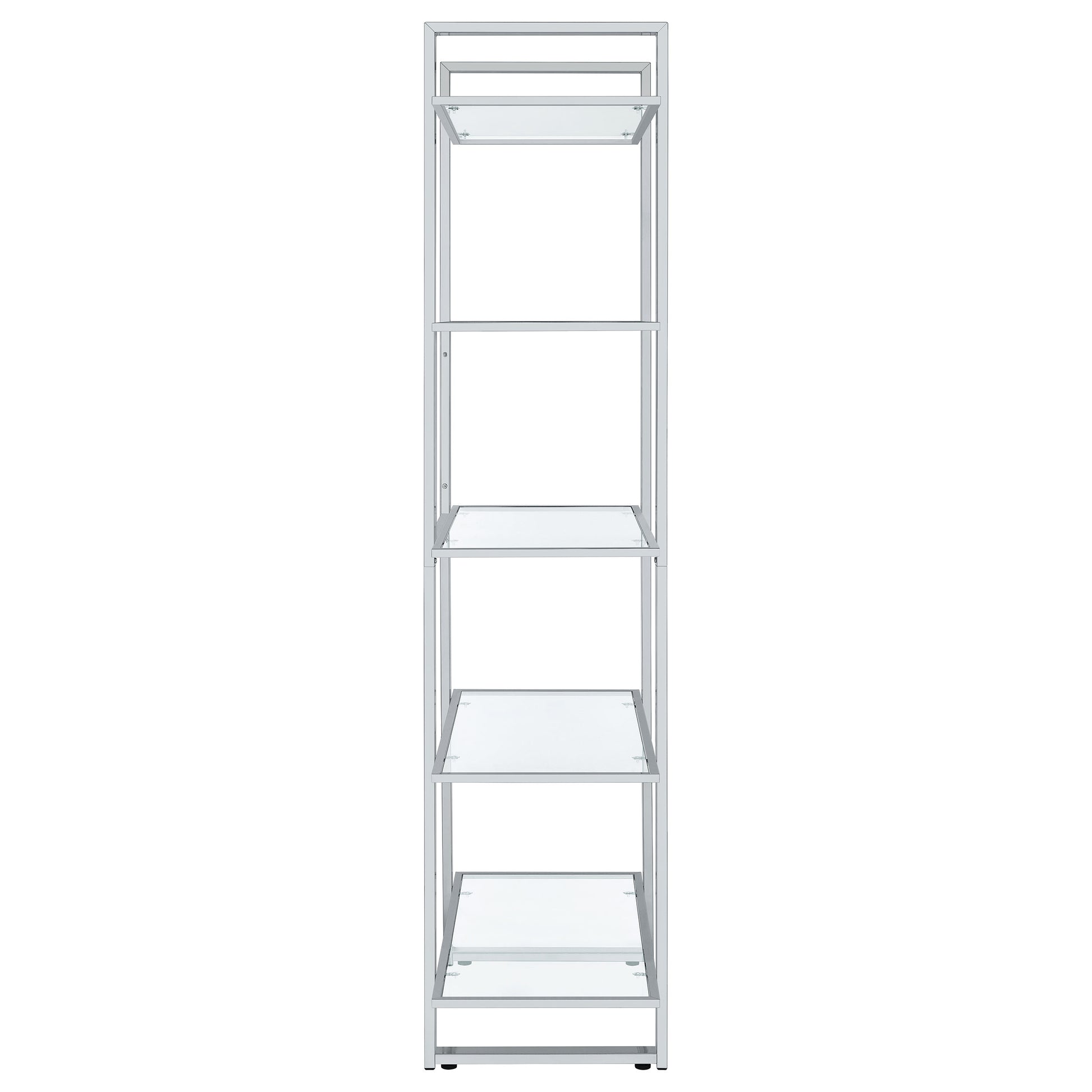 Create a well styled living space that radiates modern luxury. This contemporary bookcase delivers sleek lines of metal in your choice of gorgeous, polished finishes. The shelves are made with tempered glass for smooth, sturdy support. With five shelves total, it offers ample space to display photos, keepsakes, and more. Perfect for a living room, home office, or den, this fresh, modern bookcase is a fabulous choice for any home.