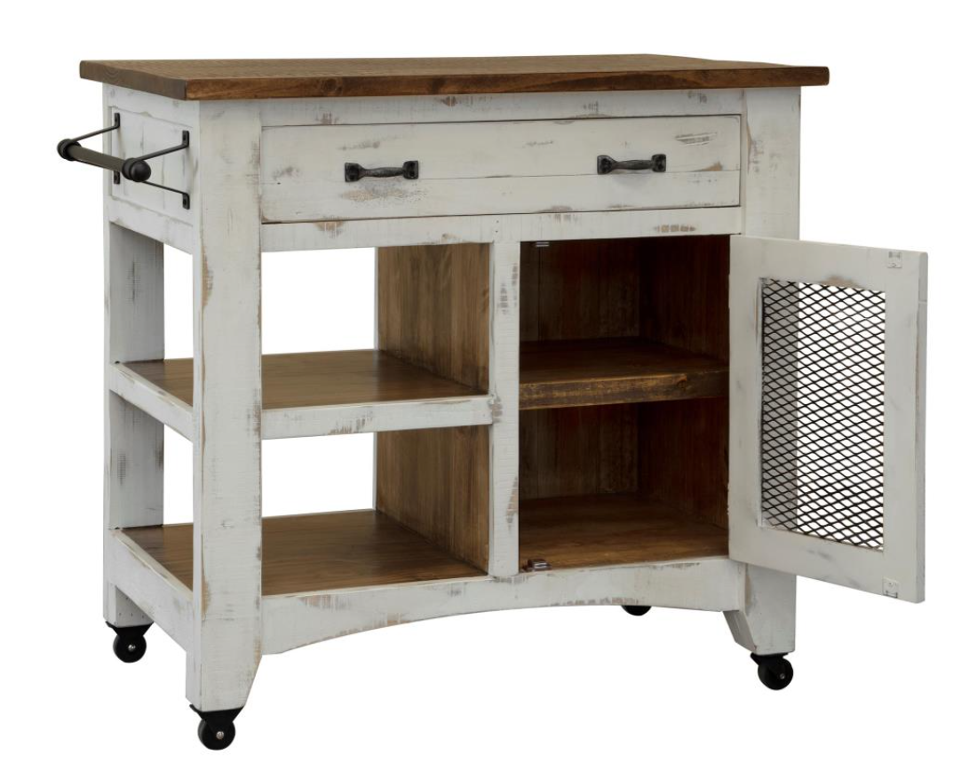 - Door on Antique and Pueblo Collections feature iron mesh panel.