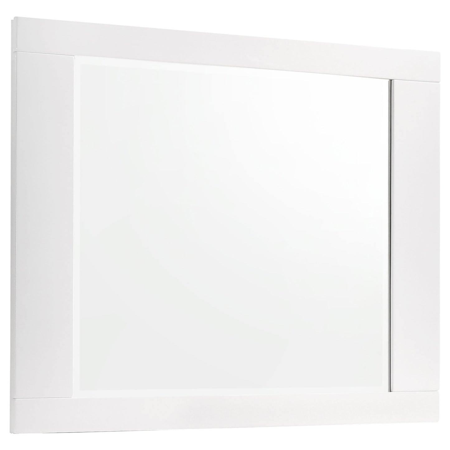 Sleek and contemporary, this four-piece bedroom set exudes modern glamour. Its white, polyurethane coating is pleasingly polished to a gorgeous, glossy finish. The mirror and case pieces are simple and straight. The sturdy bed frame boasts a boldly curved shape. Gleaming, chrome hardware completes its design with even more brilliant shine.