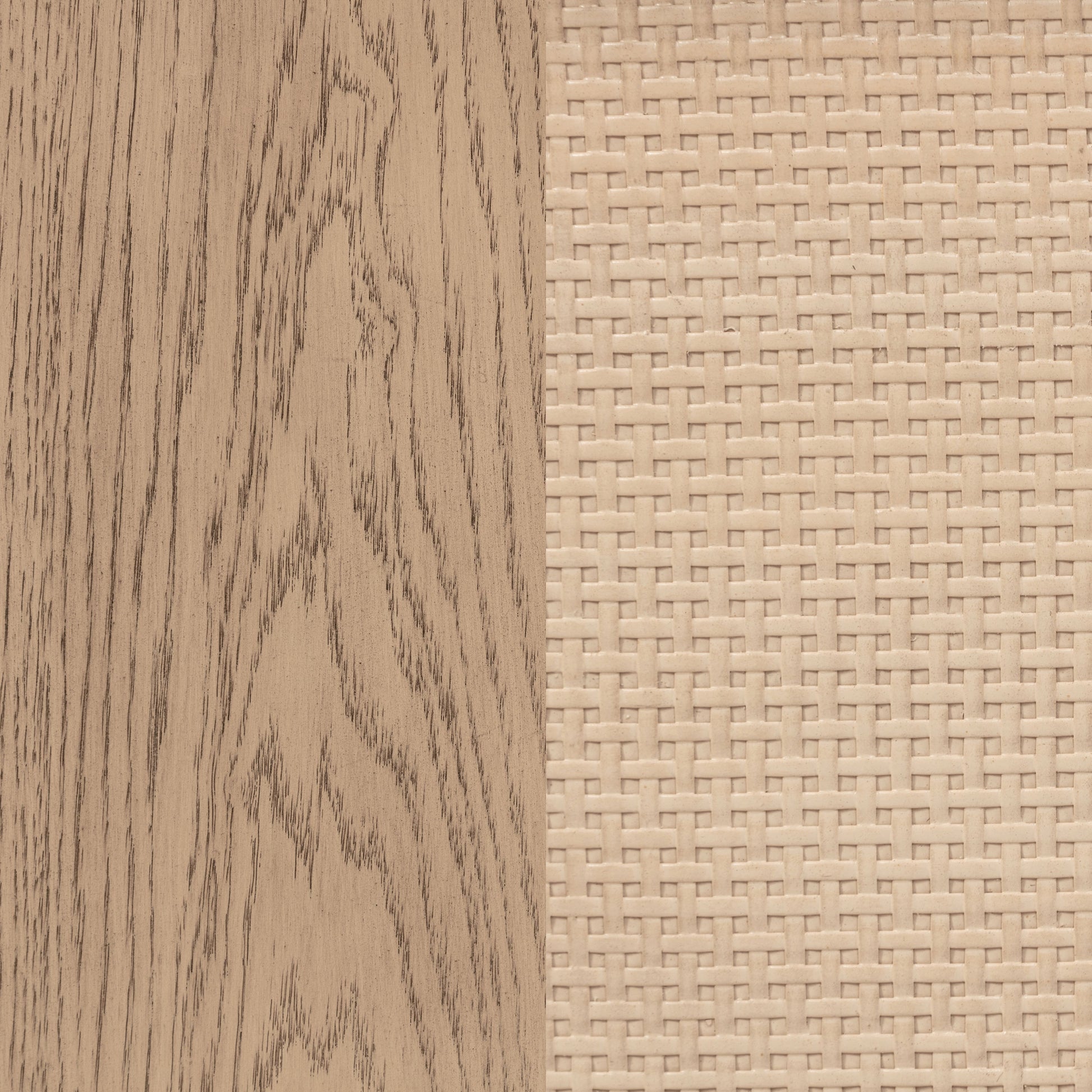 • Crafted with solid poplar, engineered wood, oak veneer, and resin cane