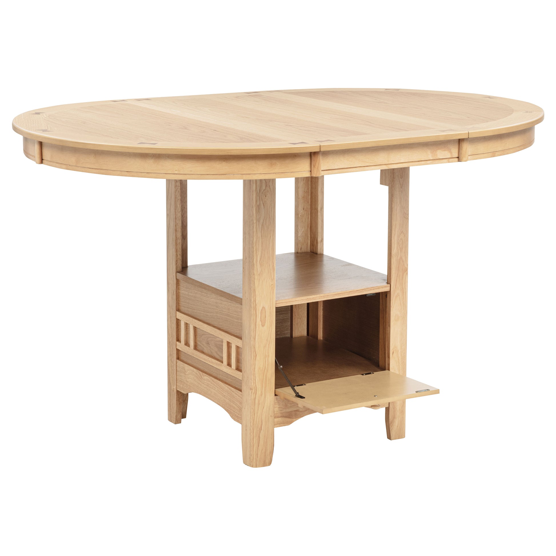 • Counter height dining set centers around an oval table that expands from 42 inch round to 60 inch length