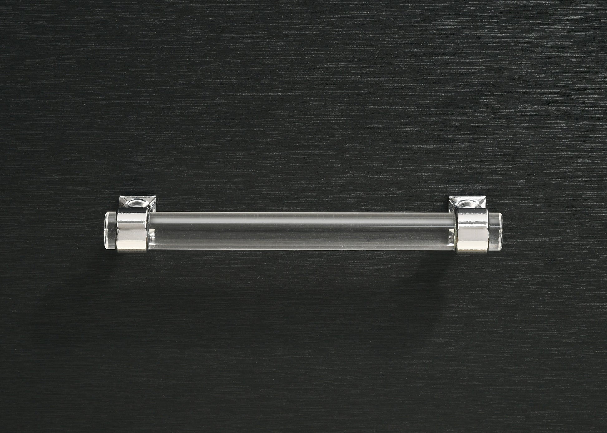 • Cool chrome finish trim highlights the front of the case, long bar pulls and decorative legs