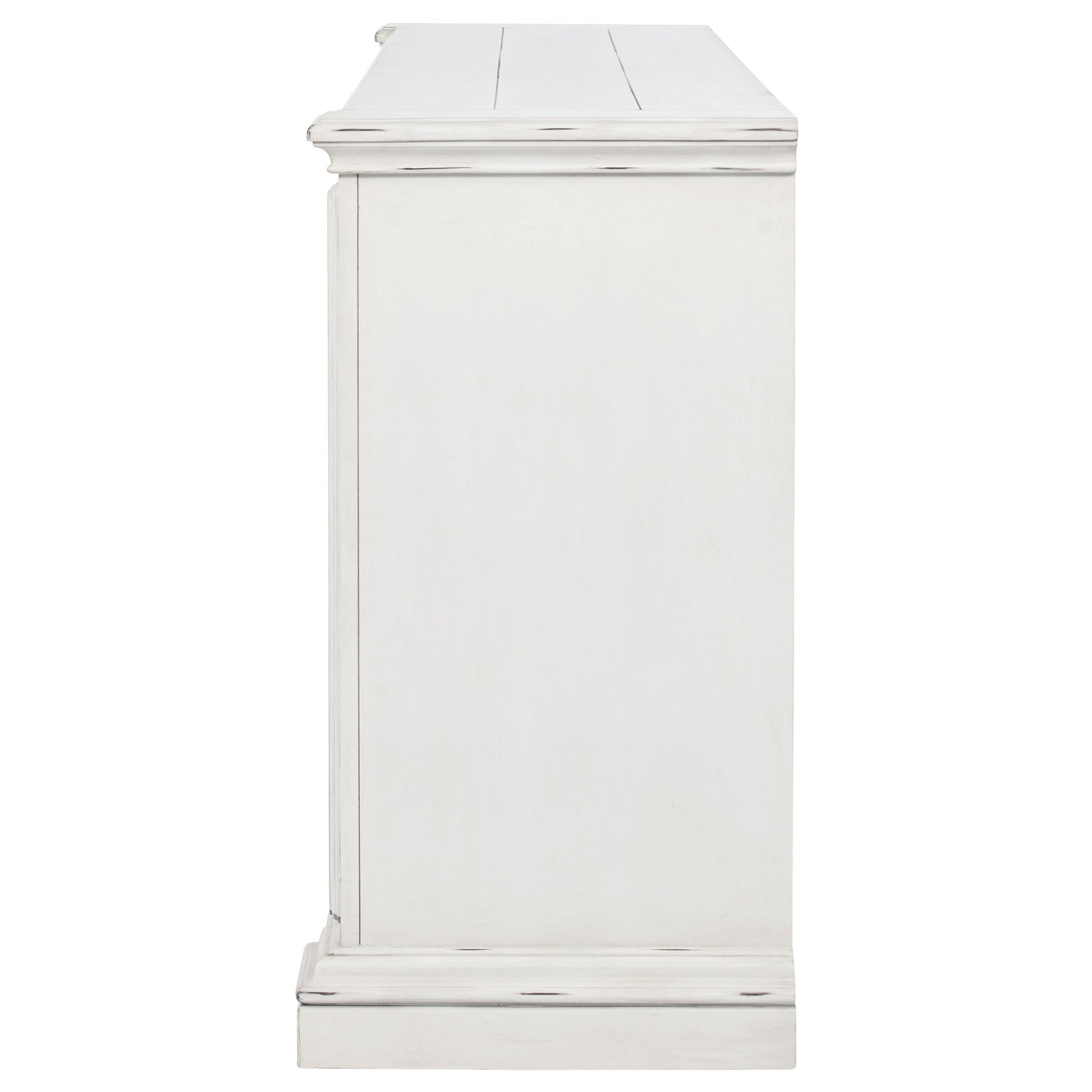 Classic and composed, this six-drawer dresser blends traditional design with elegant practicality. Its vintage white finish is gently distressed, accentuating ornate trim and antique bronze drawer pulls. A hidden jewelry tray tucked into the bottom drawer adds a thoughtful touch, while spacious drawers offer smooth functionality. Crafted from poplar and engineered wood, it brings heritage-inspired charm to any bedroom.