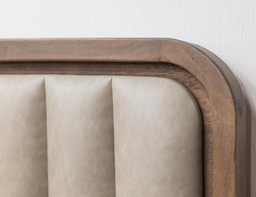 Panel headboard or Upholstered headboard in a light gray faux leather.