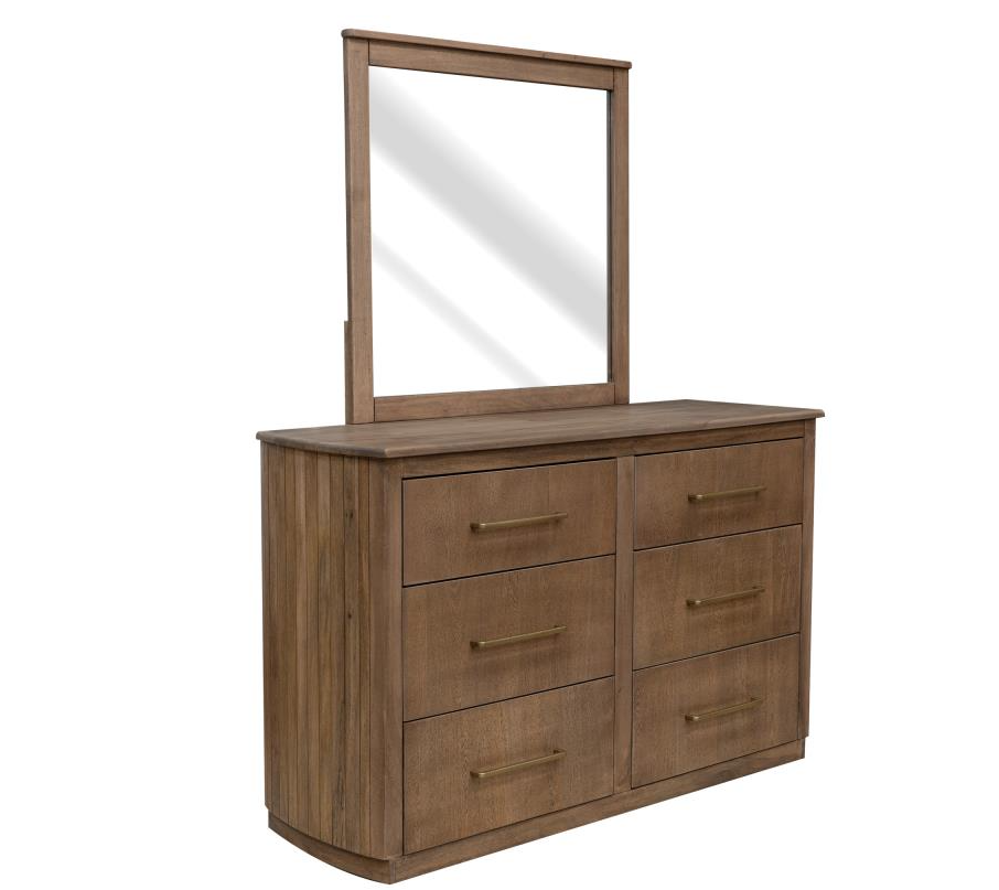 Bruchandi California King Upholstered Panel Bed with Mirrored Dresser