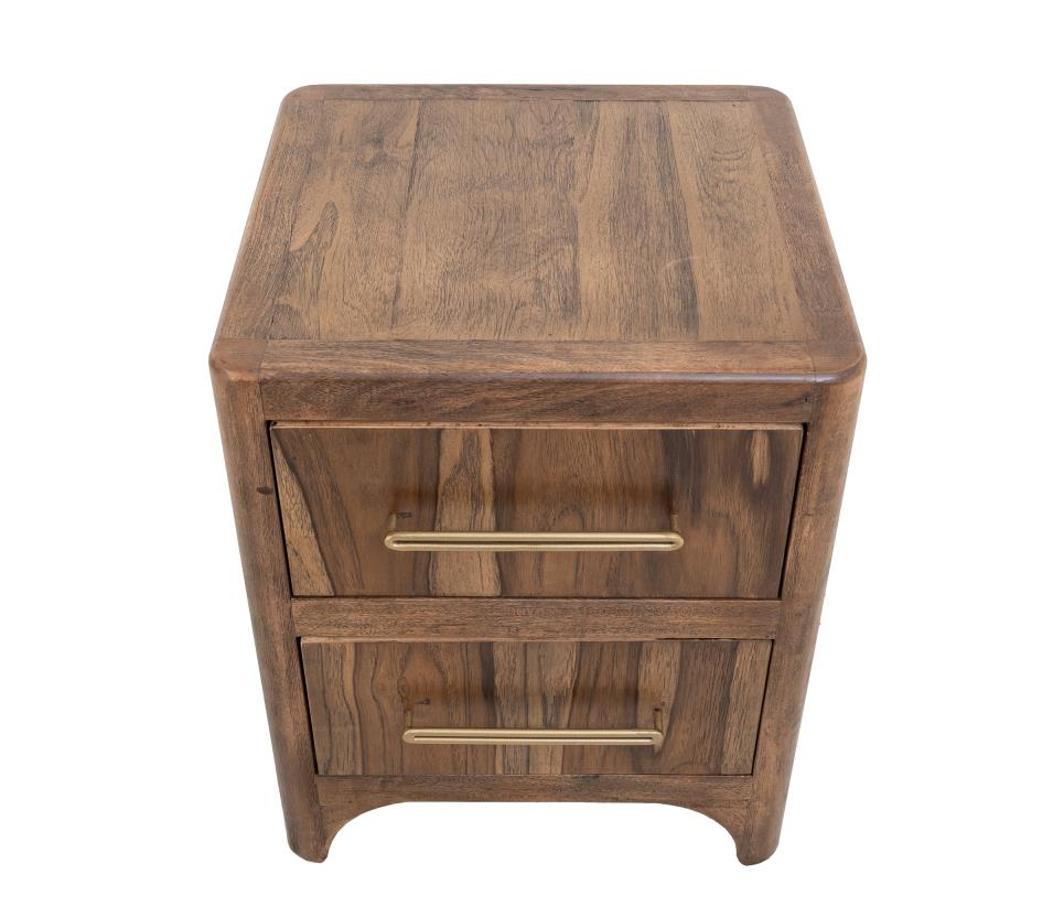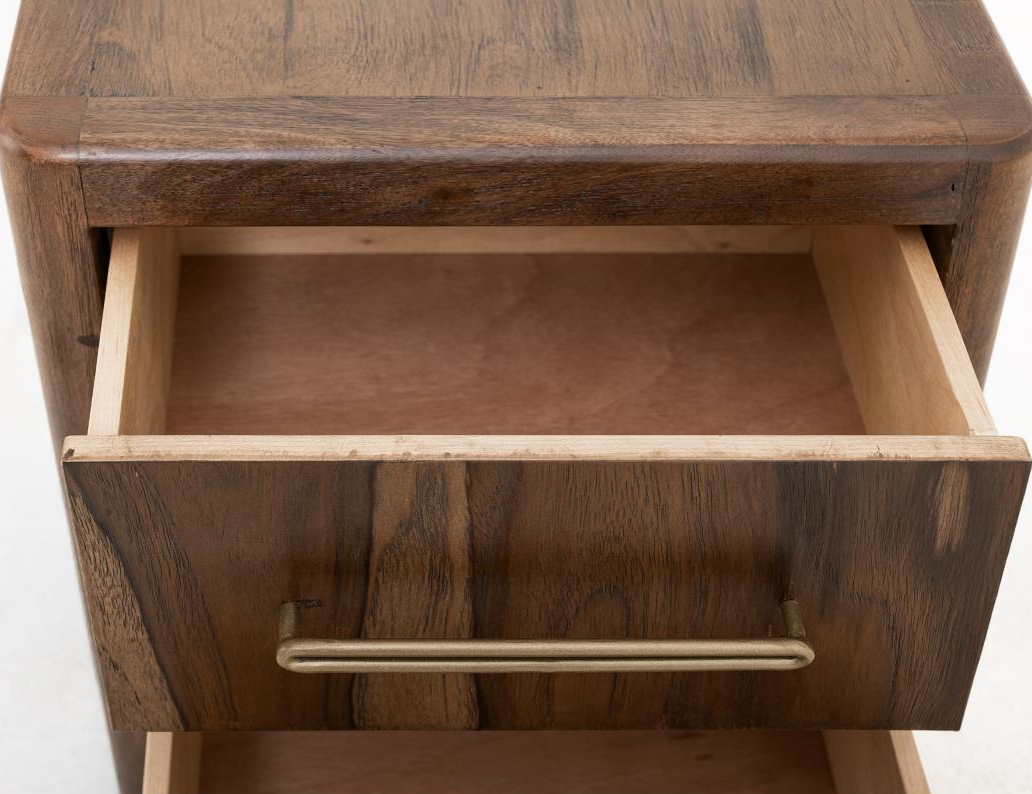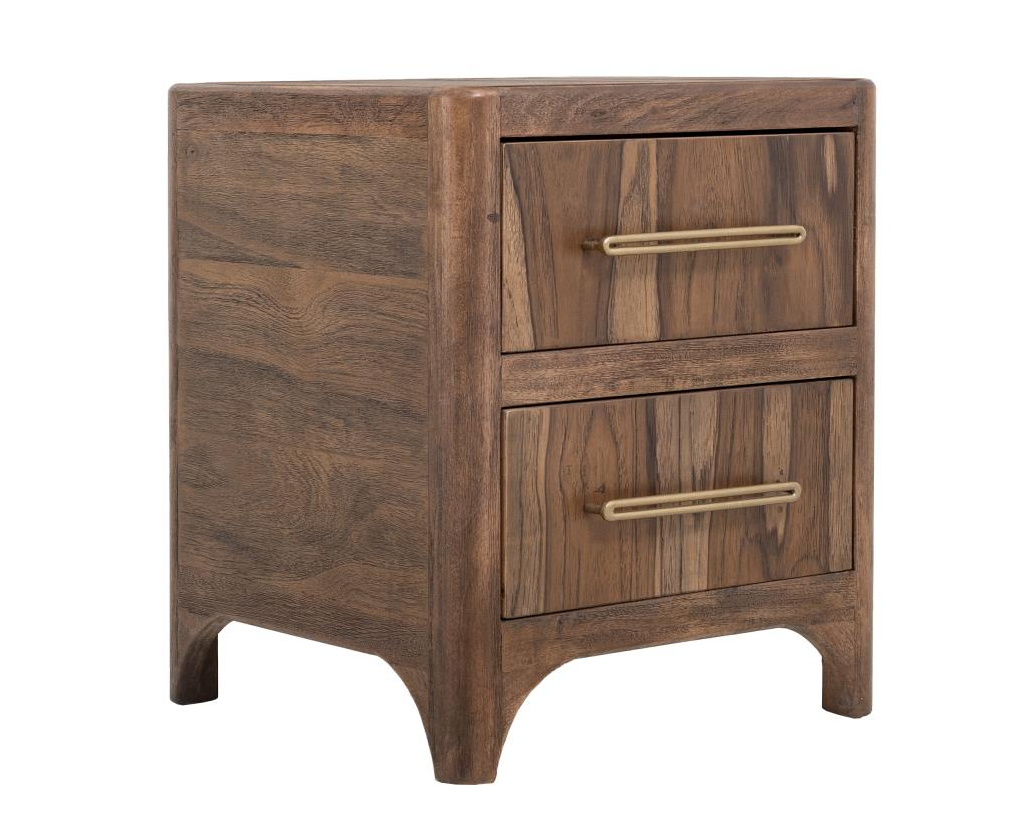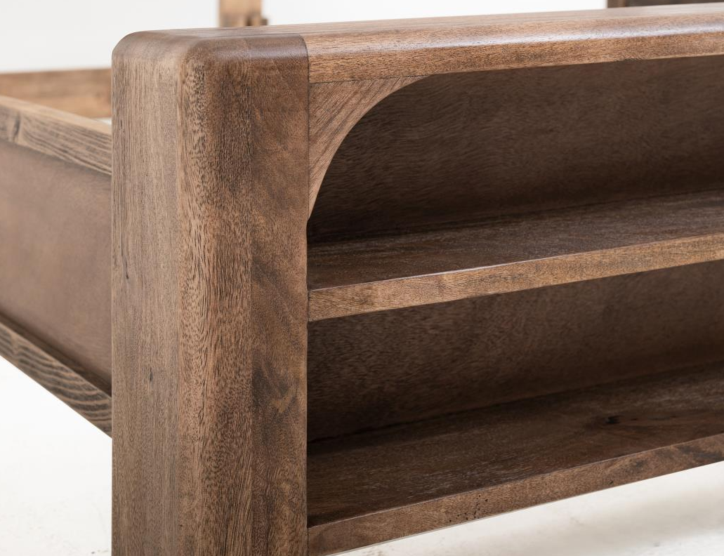 Transform your space with this modern bedroom set. Crafted from engineered teak and sustainable mango wood, this collection combines lasting durability with natural beauty. The rich brown multi-step lacquer finish adds warmth and depth to the furniture. The aged golden handles add a touch of sophistication.