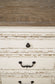 | Details | Made of veneers, wood and engineered wood, Antiqued two-tone finish, 3 smooth-gliding drawers with dovetail construction and felt bottoms, Bail pulls and knobs in dark bronze tone finish, Pair of cabinet doors with inset mirrored glass and decorative fretwork, 2 adjustable shelves, Assembly required | |