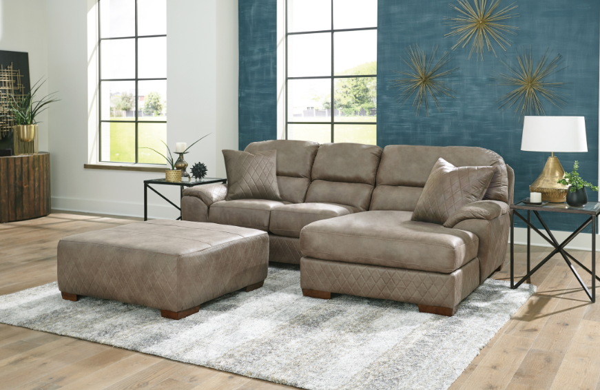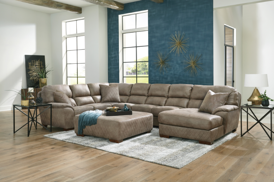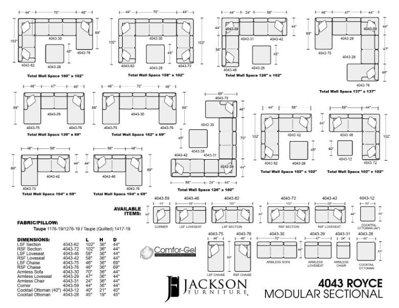 This modular group can be configured several different ways! This is great for a home with kids and pets because of the easy to clean and maintain polyester upholstery.