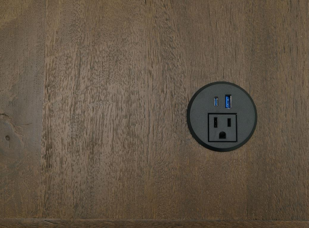 Introducing the Tamesis Desk, a blend of modern design and practicality for your workspace. This minimalist desk features clean, sleek lines and is expertly crafted from sustainably sourced mango and melina wood. Its elegant multi-step lacquer finish showcases a beautiful interplay of light brown and chocolate brown tones, enhancing the wood's natural grain. The Tamesis Desk has a spacious rectangular top with rounded edges, combining modern style with comfort. It features a circular grommet with a power outlet and USB C port for added convenience. It includes two well-sized drawers for ample storage, helping you maintain an organized workspace. With solid wooden legs and sturdy construction, this desk is a durable addition to your office. The Tamesis Desk combines elegant aesthetics with practical features, making it ideal for working from home or setting up a stylish office. Its sophisticated design and functionality enhance productivity and workspace ambiance.